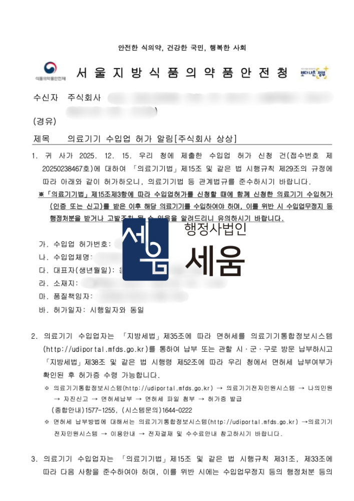 의료기기 수입업 허가 사례