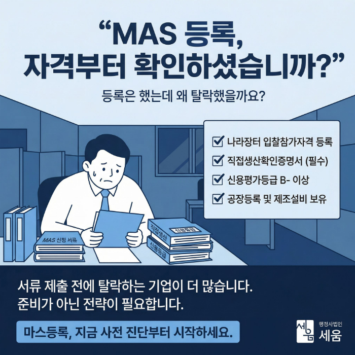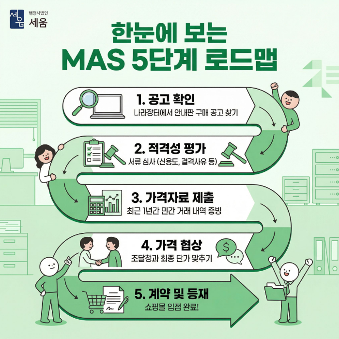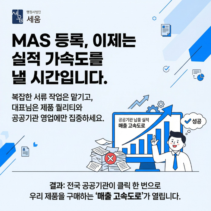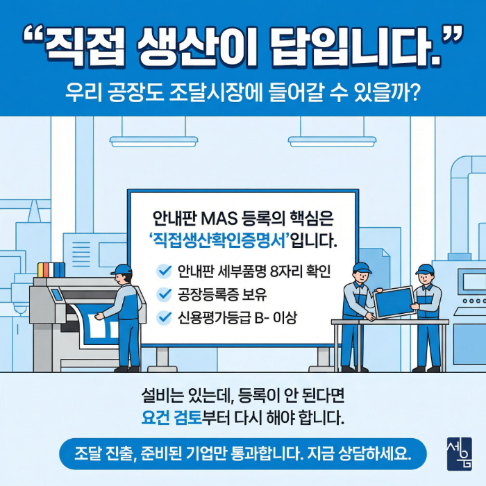 안내판 MAS 등록은 복잡하지만, 공공기관 판로 개척을 위해 반드시 넘어야 할 산입니다. 지금 바로 우리 회사의 자격 요건을 점검해 보세요.