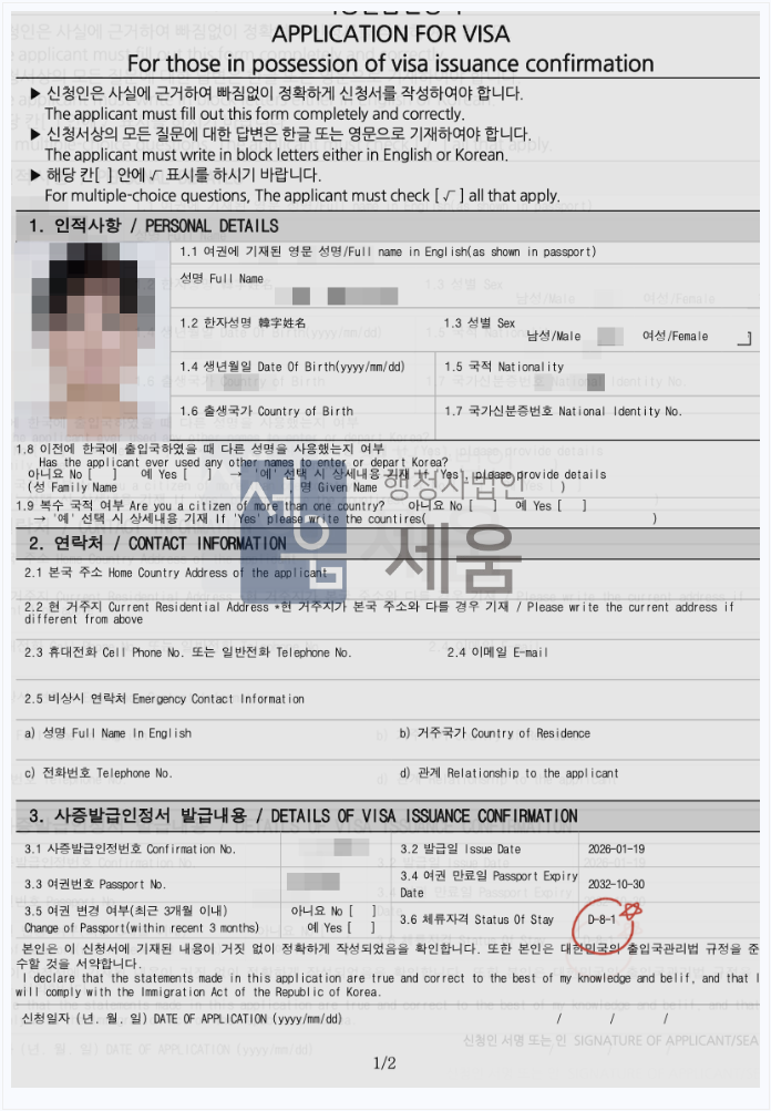 For the D-8 visa, maintenance and extension are more important than issuance.